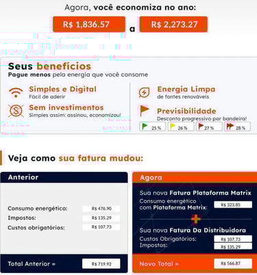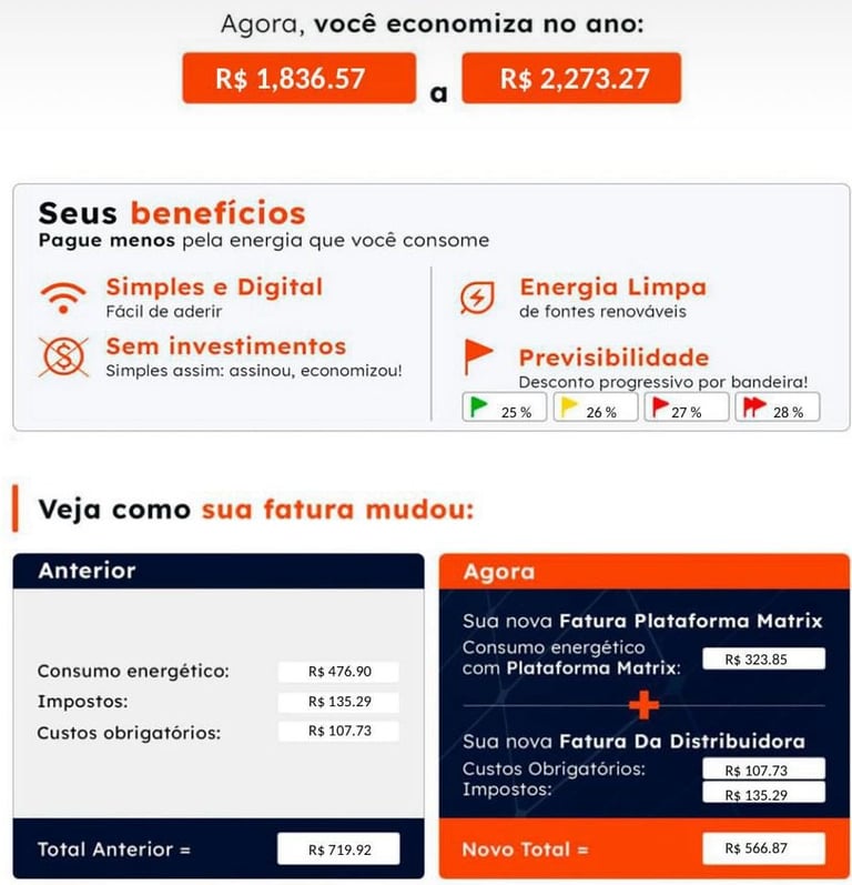 Com a Matrix Energia, você pode reduzir sua conta em até 30%, sem investimento e sem mudar a sua rotina.”